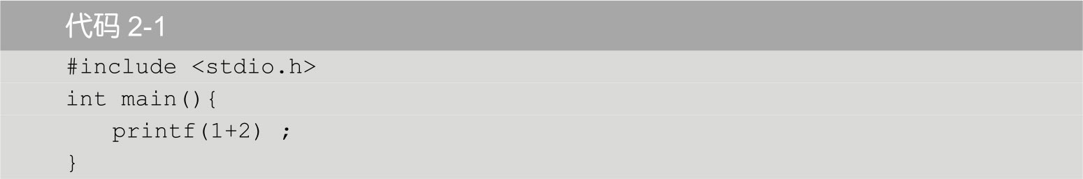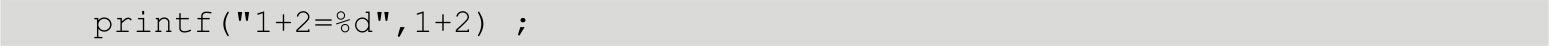 我们目前学过的printf输出的基础是字符串,显示的一句话对于计算机来说就是一串字符。字符串是由一对双引号标识的,关于这个我们已经很有经验了。printf输出数字,需要将数字嵌入字符串,输出1+2的写法是“printf(“%d”,1+2);”。