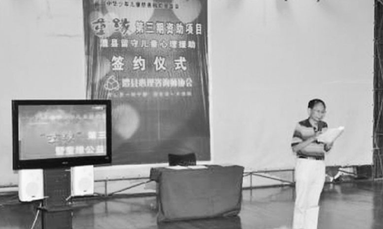 在签约仪式上,笔者重点阐释了留守儿童心理援助多层次统一的长期目标、具体目标,以及衡量指标,饱含着对留守儿童的关爱之情,饱含着对应用心理学事业的挚爱之情。