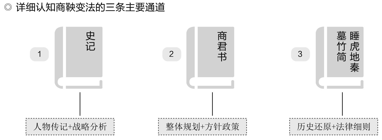 我们选择《史记》《商君书》《睡虎地秦墓竹简》为主要的材料载体,不局限于秦孝公时代。为了方便普通读者阅读,我们不做非常严格的理论辨析,而是选取一些相对有趣并且容易理解的片段,从侧面来解读商鞅变法及秦国政策的得失成败。