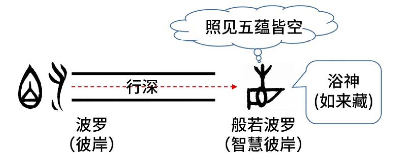 这里的 “般若” 并不是常规意义上的智慧,而是指“如来藏”的大智慧。“如来藏”就在“隐性人(物)体”的深处,所以,“般若波罗”表示的就是“‘隐性人体’深处”的意思。