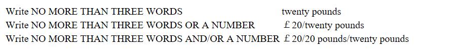 如果在考试中某一道题的正确答案是20镑,其对应的英文可以是£20、20 pounds或twenty pounds,那么根据不同的指令,正确的写法分别是: