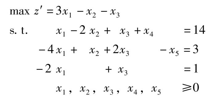其中 x 4 为松弛变量, x 5 为剩余变量。