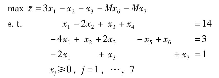 引入两个人工变量 x 6 , x 7 ,于是得到下面的大 M 问题: