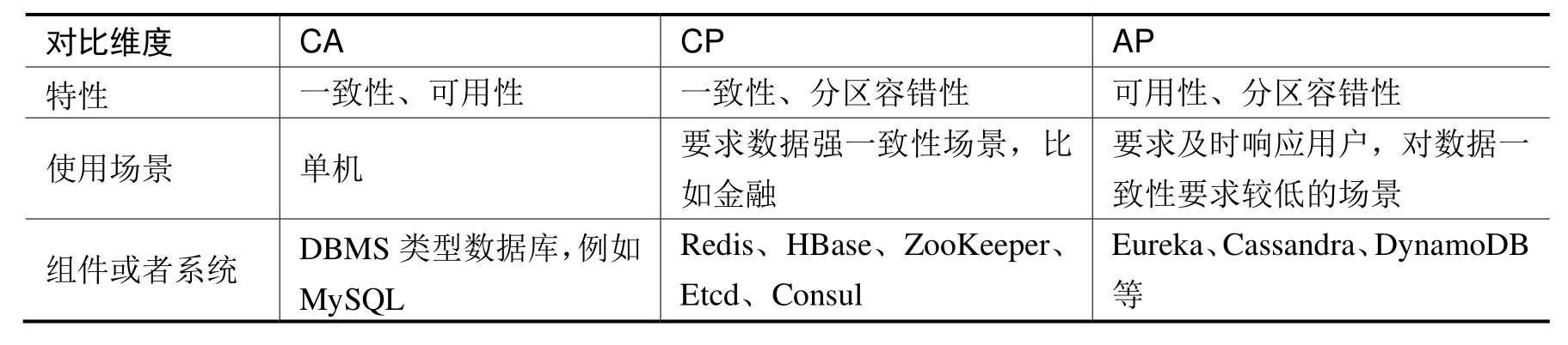 最后我们来对比分析一下CA、CP以及AP这3种策略,以方便读者记忆和理解,具体如表1-4所示。
