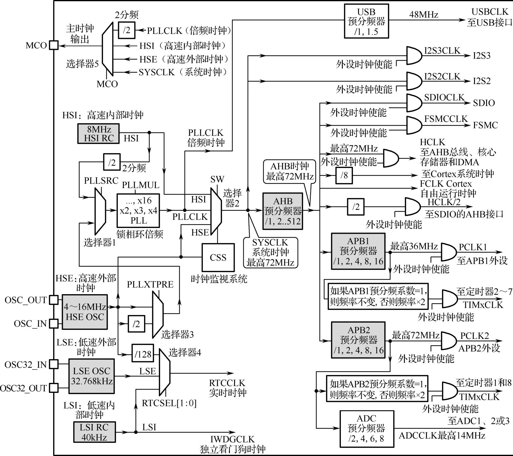 图2-12 STM32F103单片机时钟系统图(时钟树)