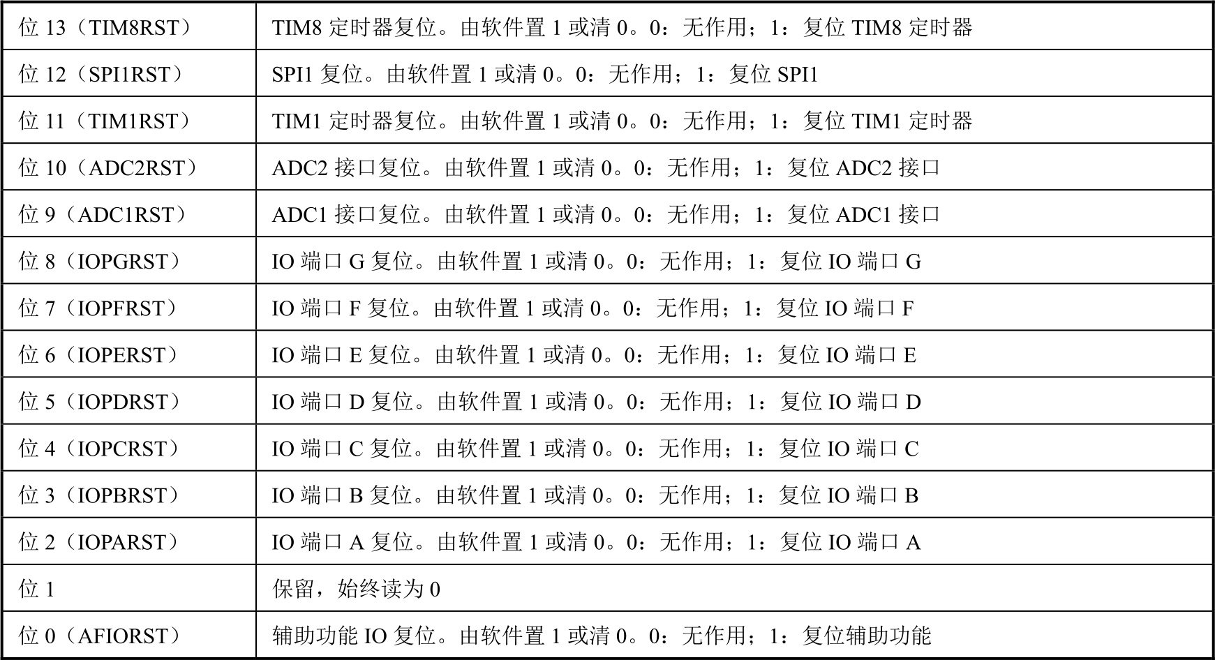 表2-5 RCC_APB2RSTR寄存器各位功能说明