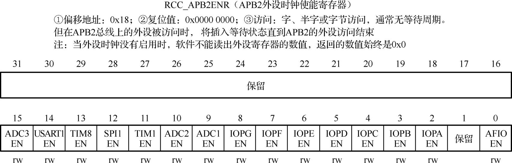 图2-18 RCC_APB2ENR寄存器的组成位