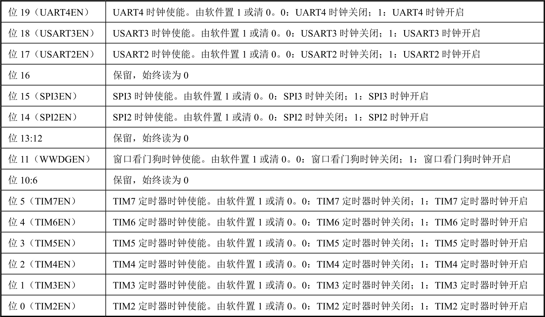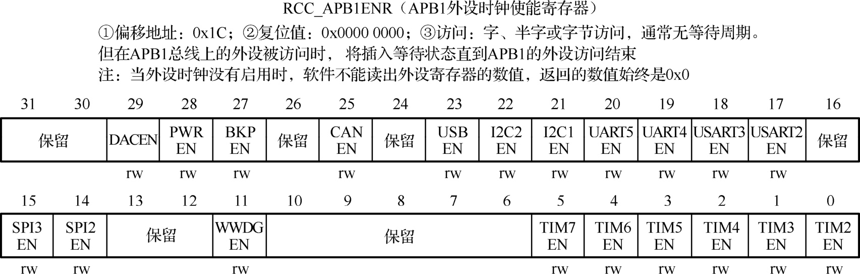 图2-19 RCC_APB1ENR寄存器的组成位