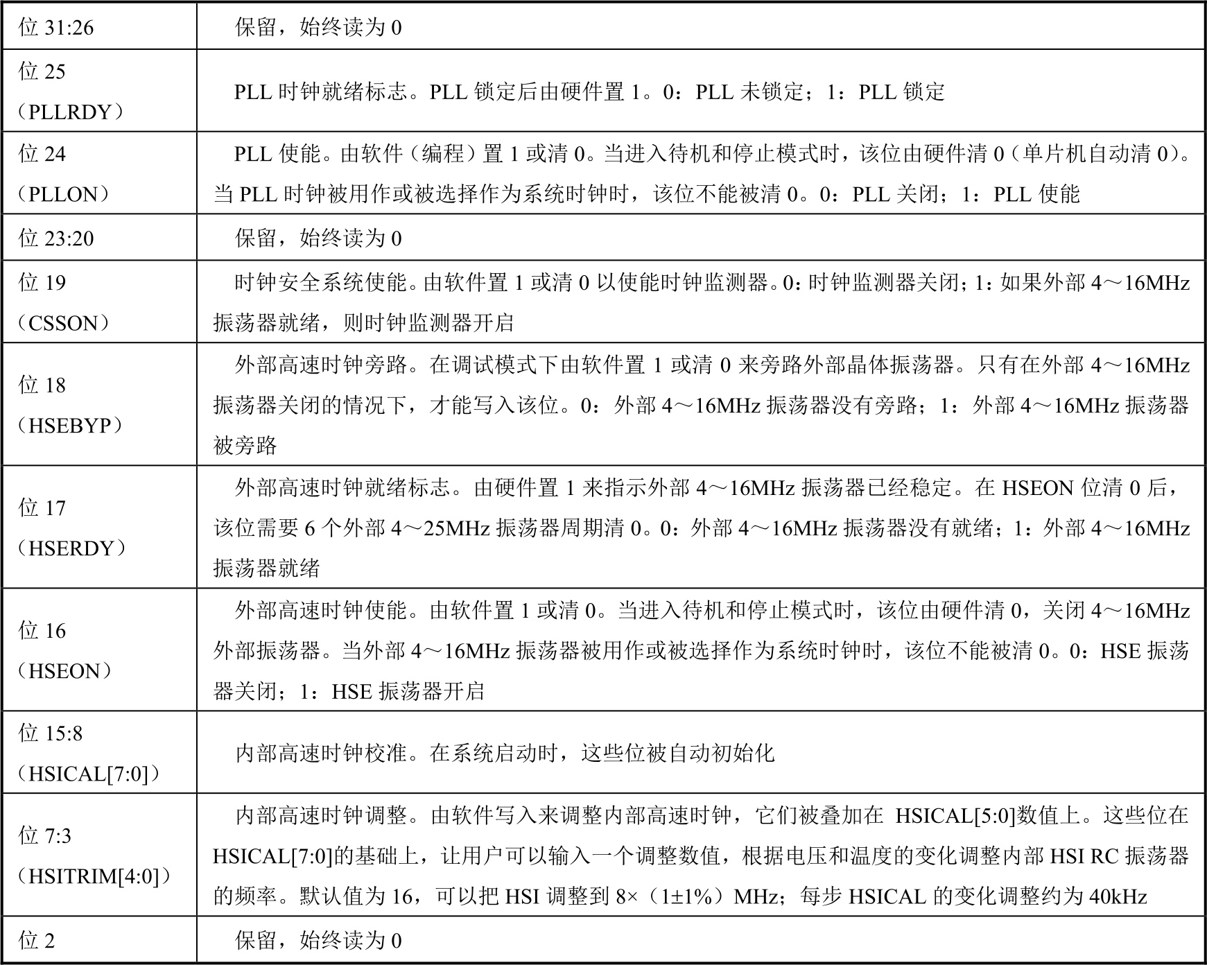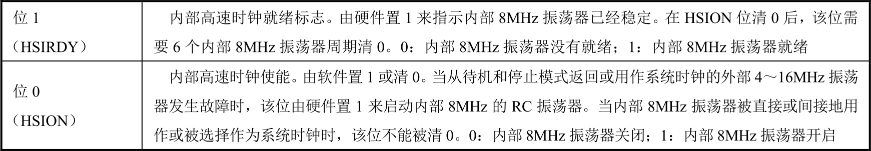 表2-3 RCC_CR寄存器各位功能说明