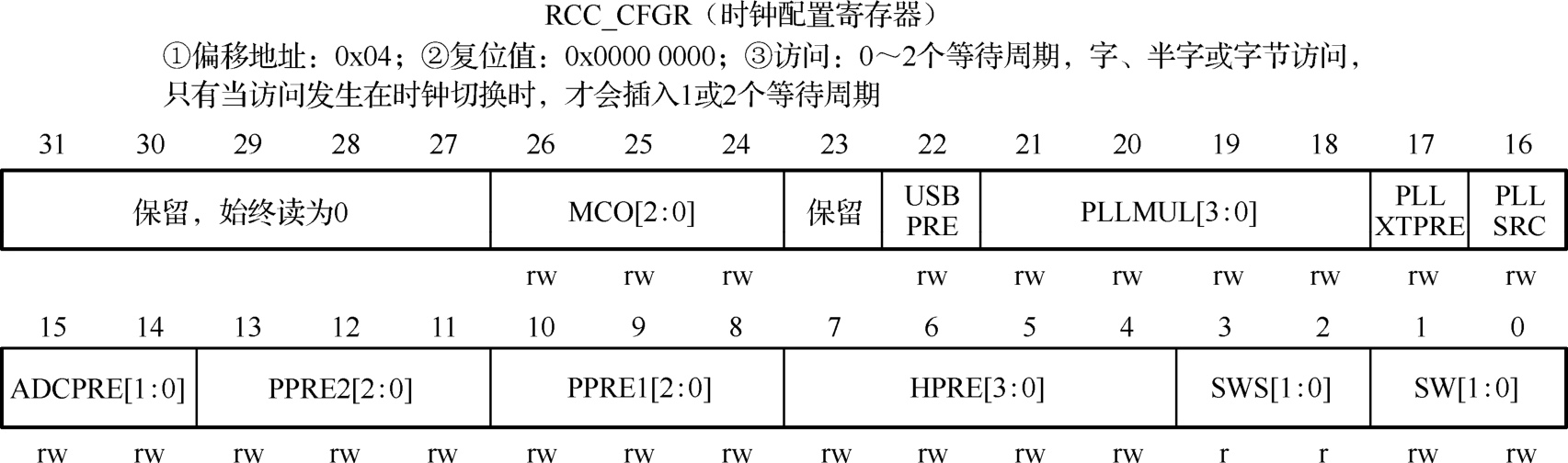 图2-14 RCC_CFGR寄存器的组成位