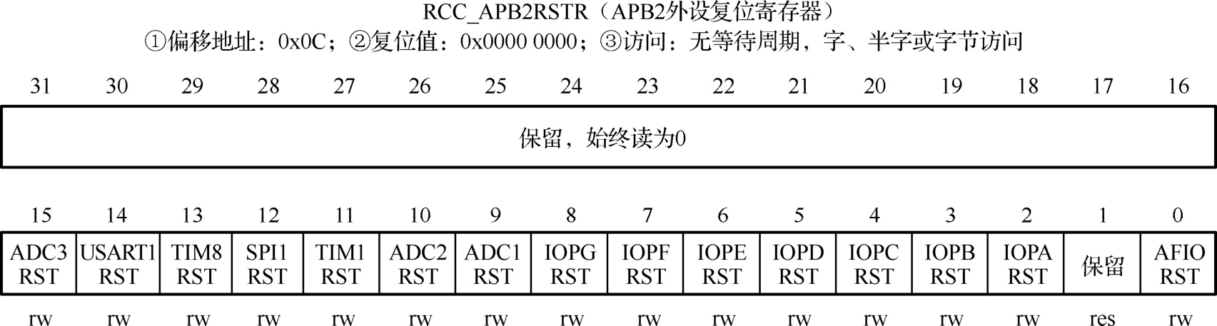 图2-15 RCC_APB2RSTR寄存器的组成位