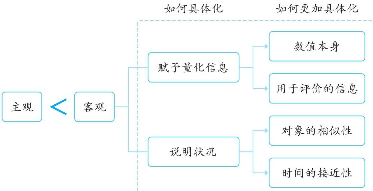 在本例题中,关于“很多”,具体化的方向是具体赋予人数值和比例值,也就是要赋予量化信息。