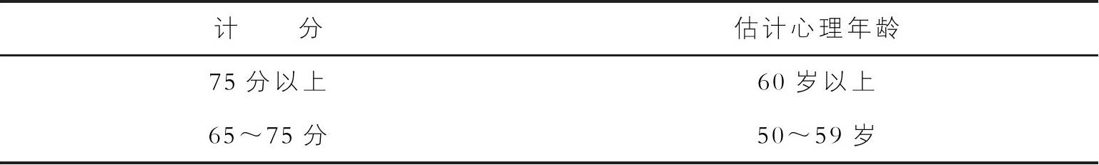 表1-4-2 心理年龄计分对照表