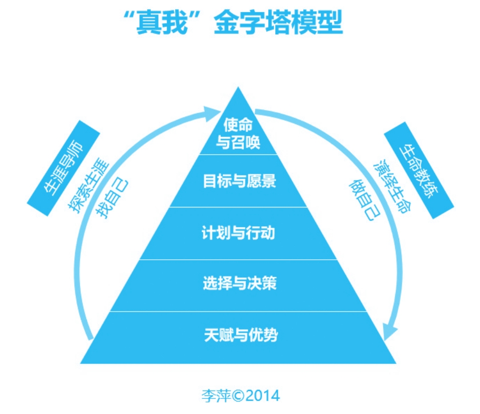 “真我”金字塔模型的五步骤与五目标、五内容相对应:
