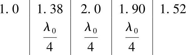 从上面的讨论可以知道,在限定两层膜的厚度都是 λ 0 / 4的前提下,欲使波长 λ 0 的反射光减至零,它们的折射率应满足如下关系: