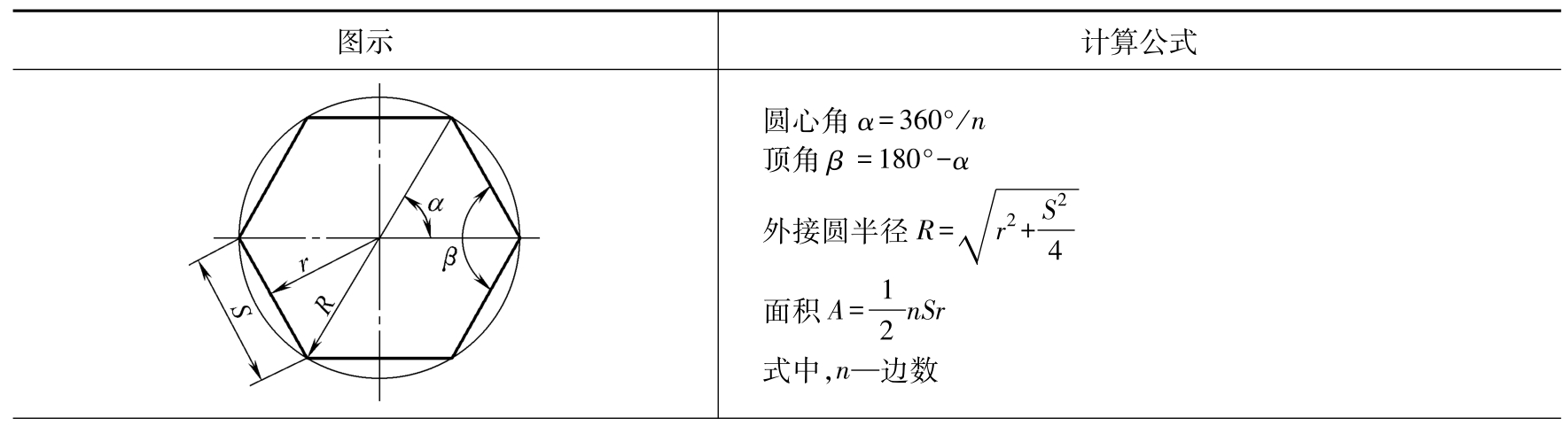 正多边形计算方法见表2-4。