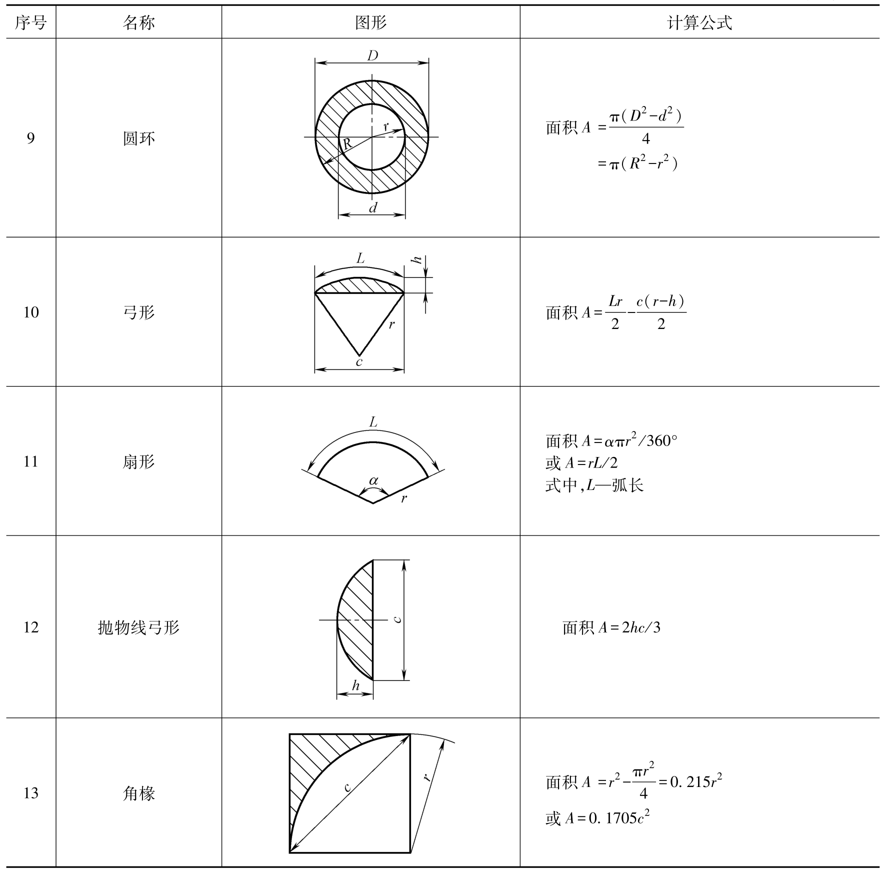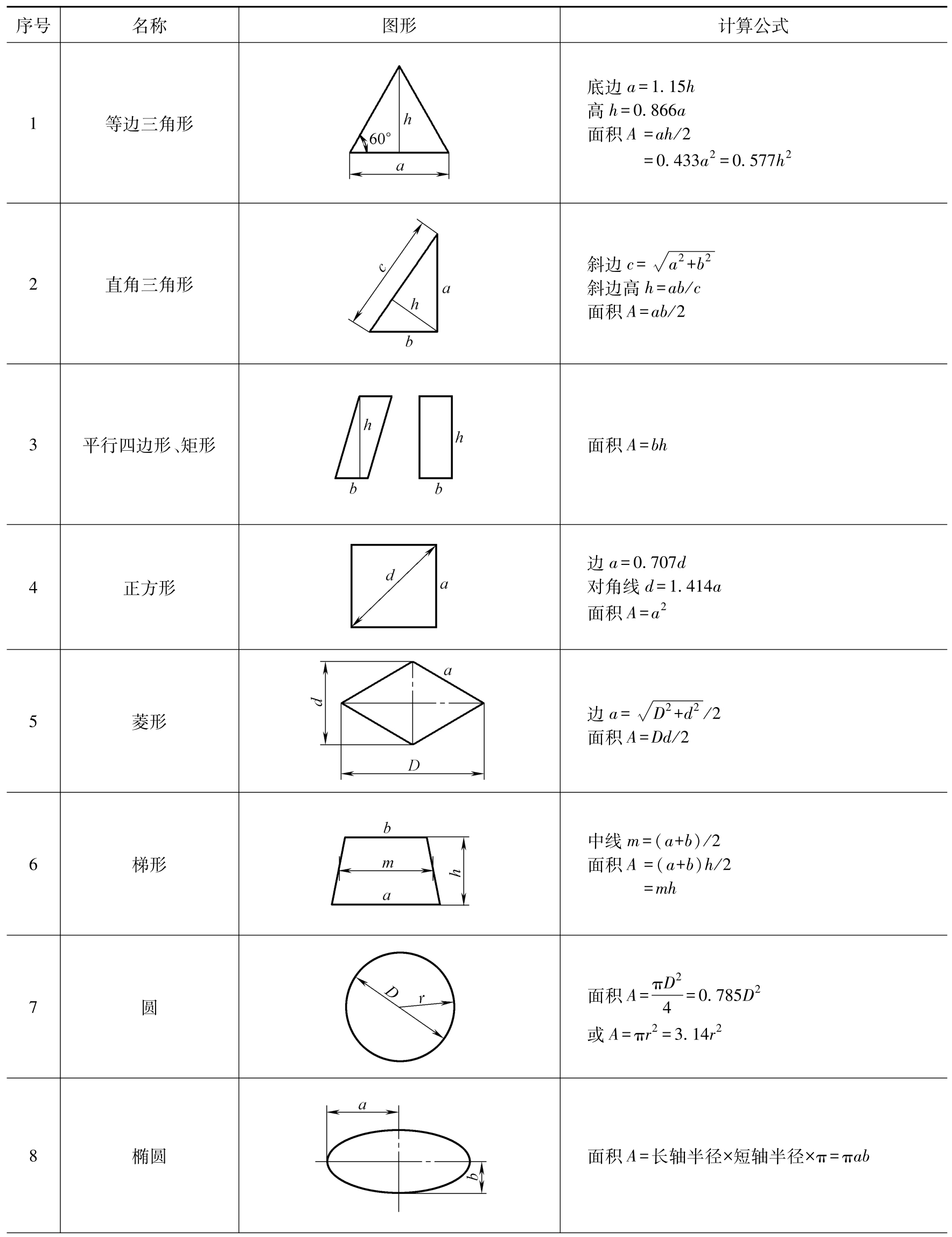 表2-3 常用各种几何图形的面积计算
