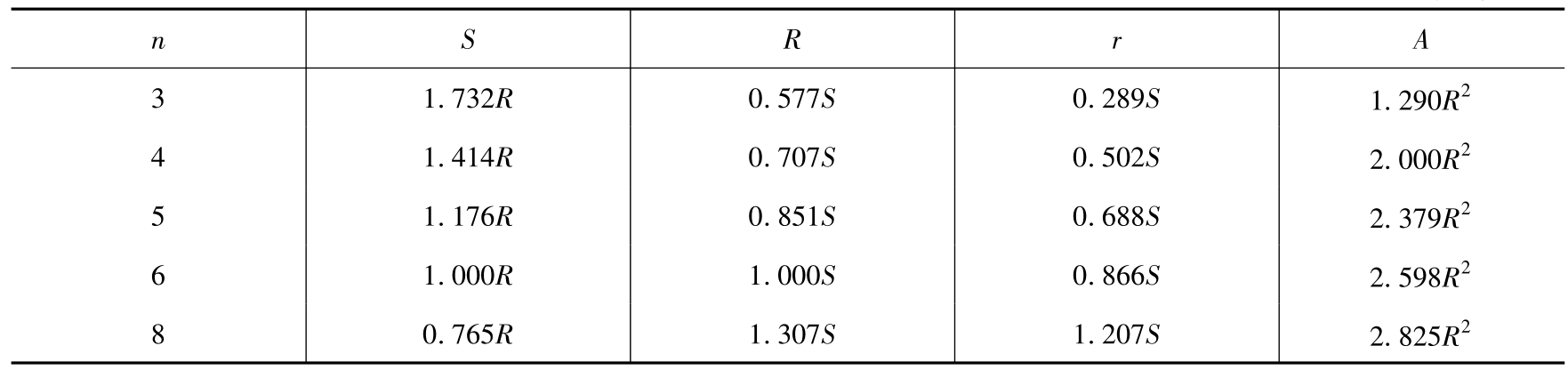 表2-4 正多边形计算方法