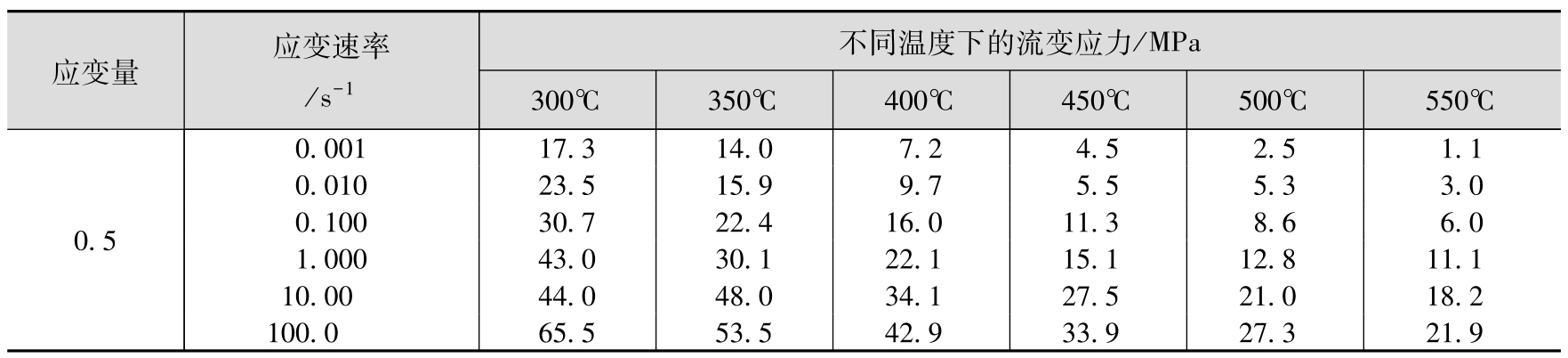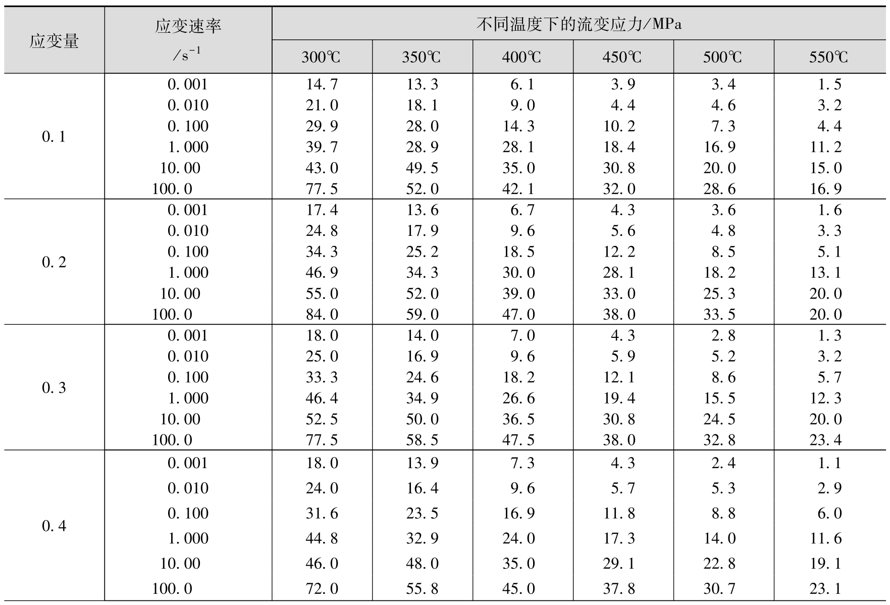 表1-2 不同温度下铸造状态的镁的流变应力与应变量和应变速率之间的关系