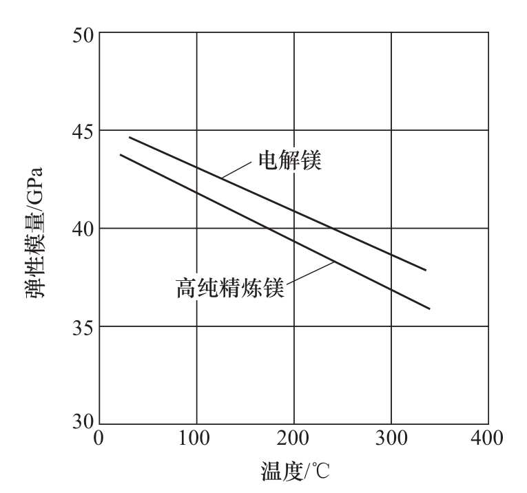 镁的外层电子为3S 2 的自由价电子结构,使得镁不具有任何共价键的特性,导致镁具有最低的平均价电子结合能和金属中最弱的电子间结合力。镁的这种电子结构使得镁具有较低的弹性模量。