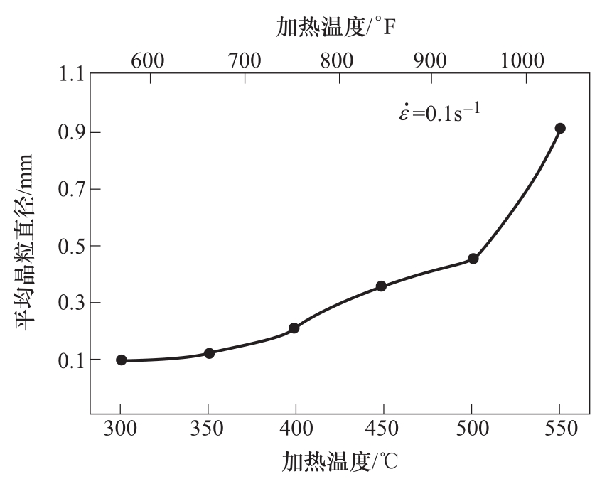图1-2 镁再结晶平均晶粒直径与加热温度之间的关系