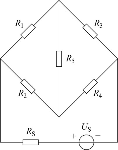 图 2.3所示是一种具有桥形结构的电路,它是测量中常用的一种电桥电路,其中的电阻既非串联又非并联。 R 1 、 R 3 和 R 5 ( R 2 、 R 4 和 R 5 )各个电阻有一端接在一个公共结点上,另一端则分别接到3个端子上,构成一个 Y联结 ( 或称为星形联结 );电阻 R 1 、 R 2 和 R 5 ( R 3 、 R 4 和 R 5 )各个电阻分别接在3个端子的每两个之间,构成一个△ 联结 ( 或称为三角形联结 )。