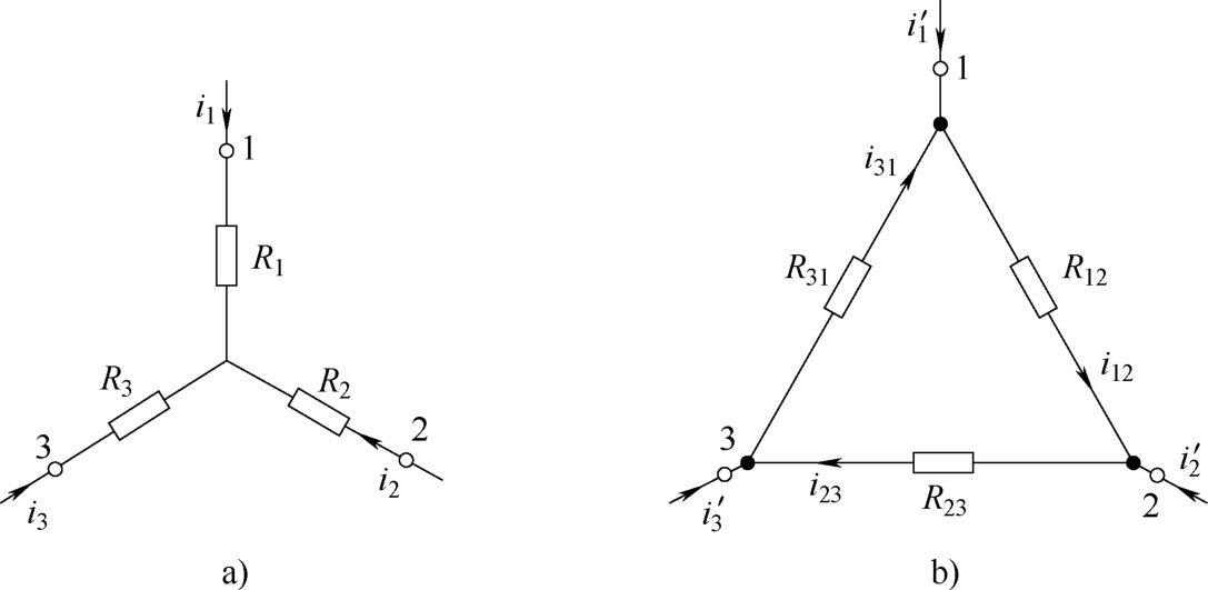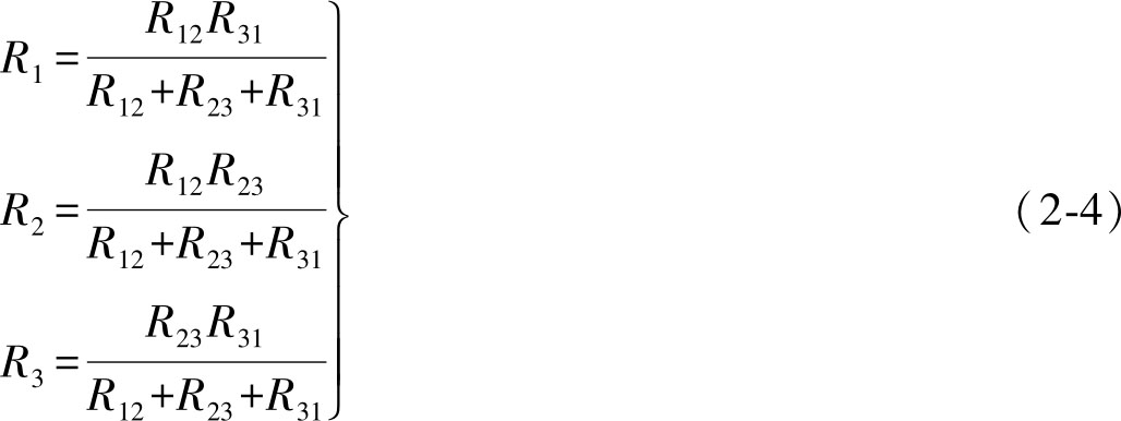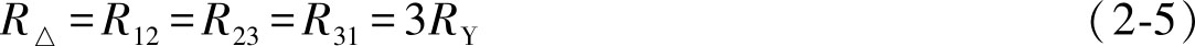 式(2-4)就是根据△联结的电阻确定Y联结的电阻的公式。