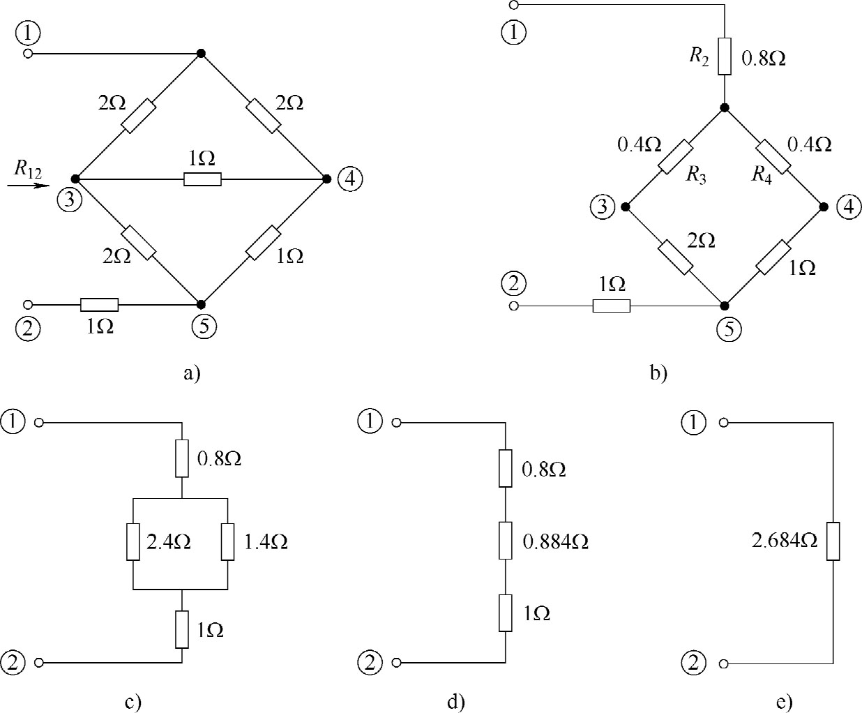 然后用串、并联的方法,得到图2.5c~图2.5e,所以