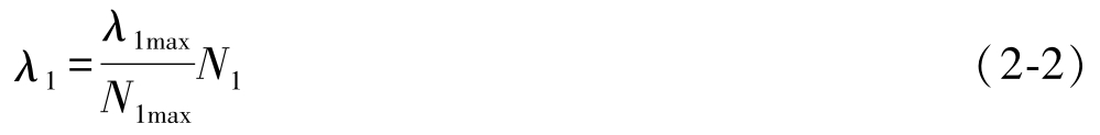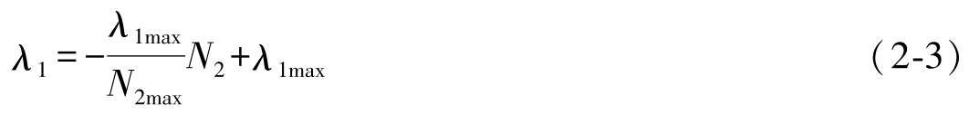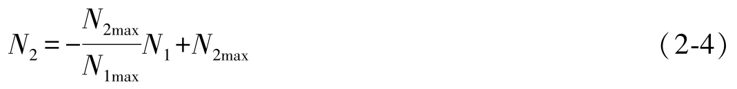 如图2-6所示,当相位1和相位2的流量为{ N 1 , N 2(2) }时,相位1存在绿信比 λ 1 = λ 1min(2) = λ 1max(2) 使得各相位所有到达车辆均能在相位绿灯时间内通过交叉口。