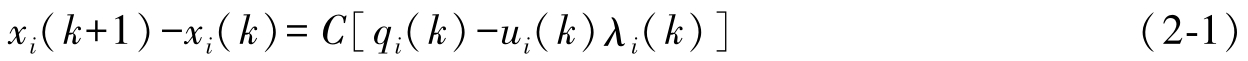 式中, x i ( k )为相位 i 的排队长度; C 为信号周期; q i ( k )为相位 i 的流入率; u i ( k )为相位 i 的流出率; λ i ( k )为相位 i 的绿信比。