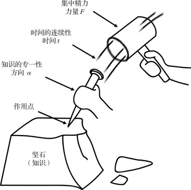 任何知识(学问)就像一块坚硬的大石头。用锥尖朝向这块坚石,就像是居里夫人说的“知识的专一性”,也像是广义动量定理中的方向“ α ”。