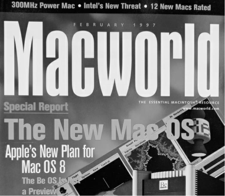Macworld 杂志提前一个月刊登了一条报道苹果公司收购Be的消息,但后来苹果公司却收购了NeXT电脑公司,所以这篇报道也就泡汤了(图片由Steve Horowitz提供)。