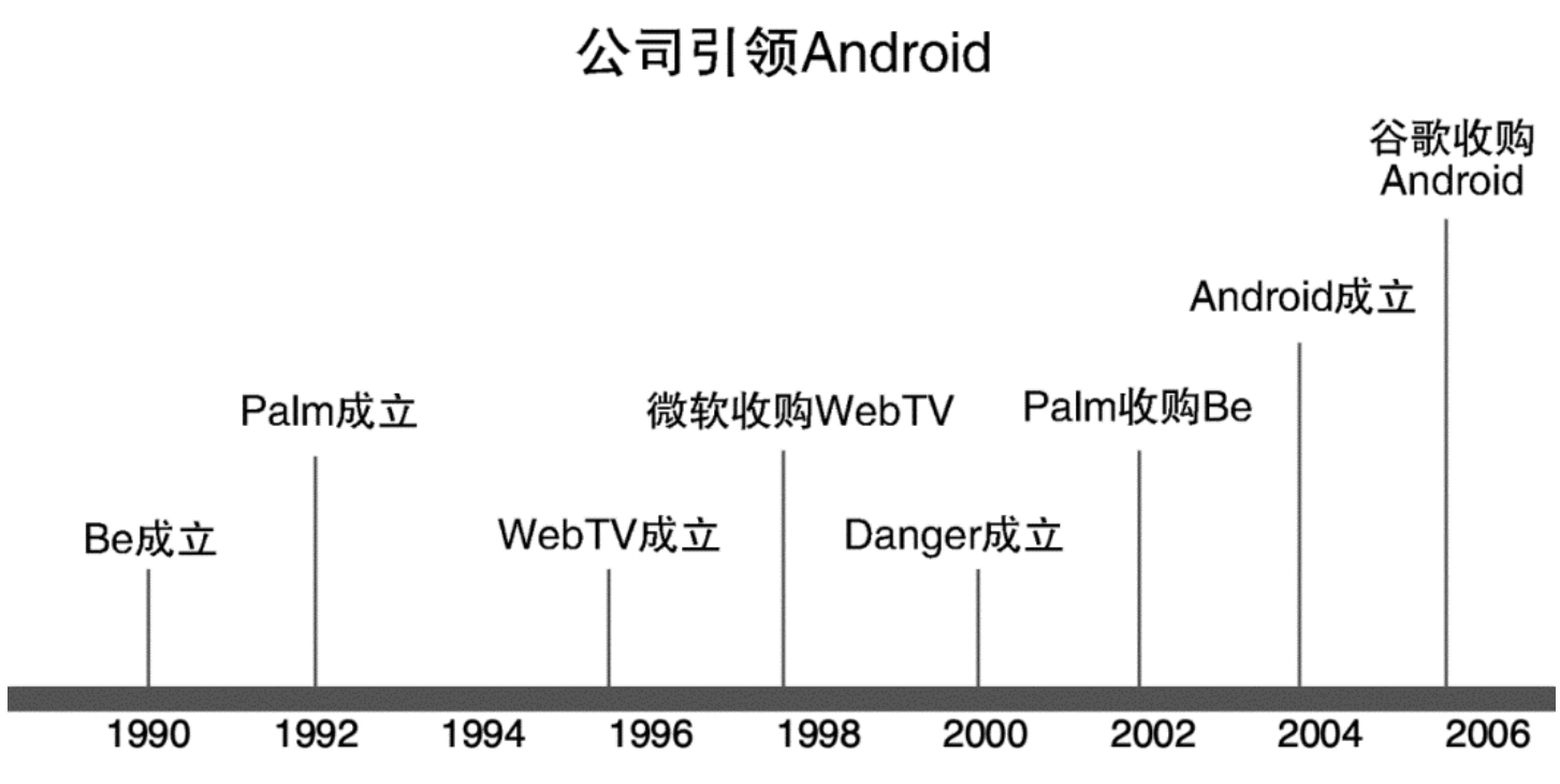Android的出现是因为有很多其他东西先出现。或者,更准确地说,Android之所以存在,是因为开发它的人之前在不同的公司工作过。这些早期的Android先驱们在这些公司积累了知识和技能,并与同行们一起合作。所以,当他们加入Android团队后,能够在相对短的时间内从零开始,开发出一个新的操作系统。