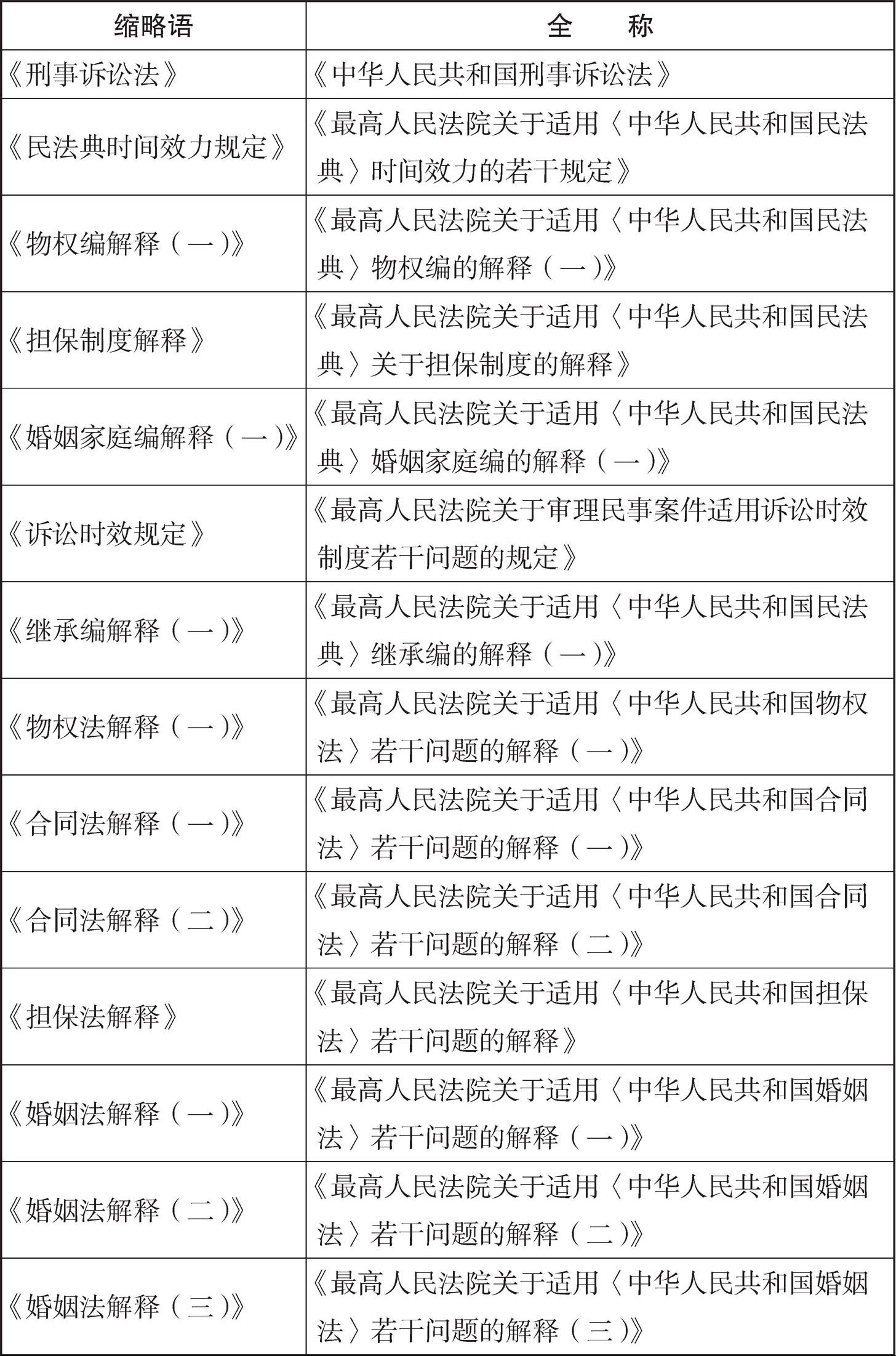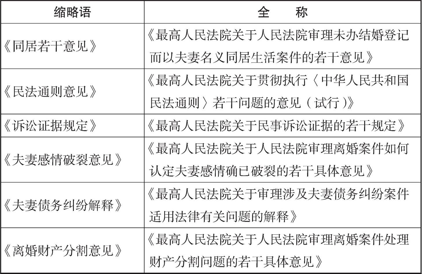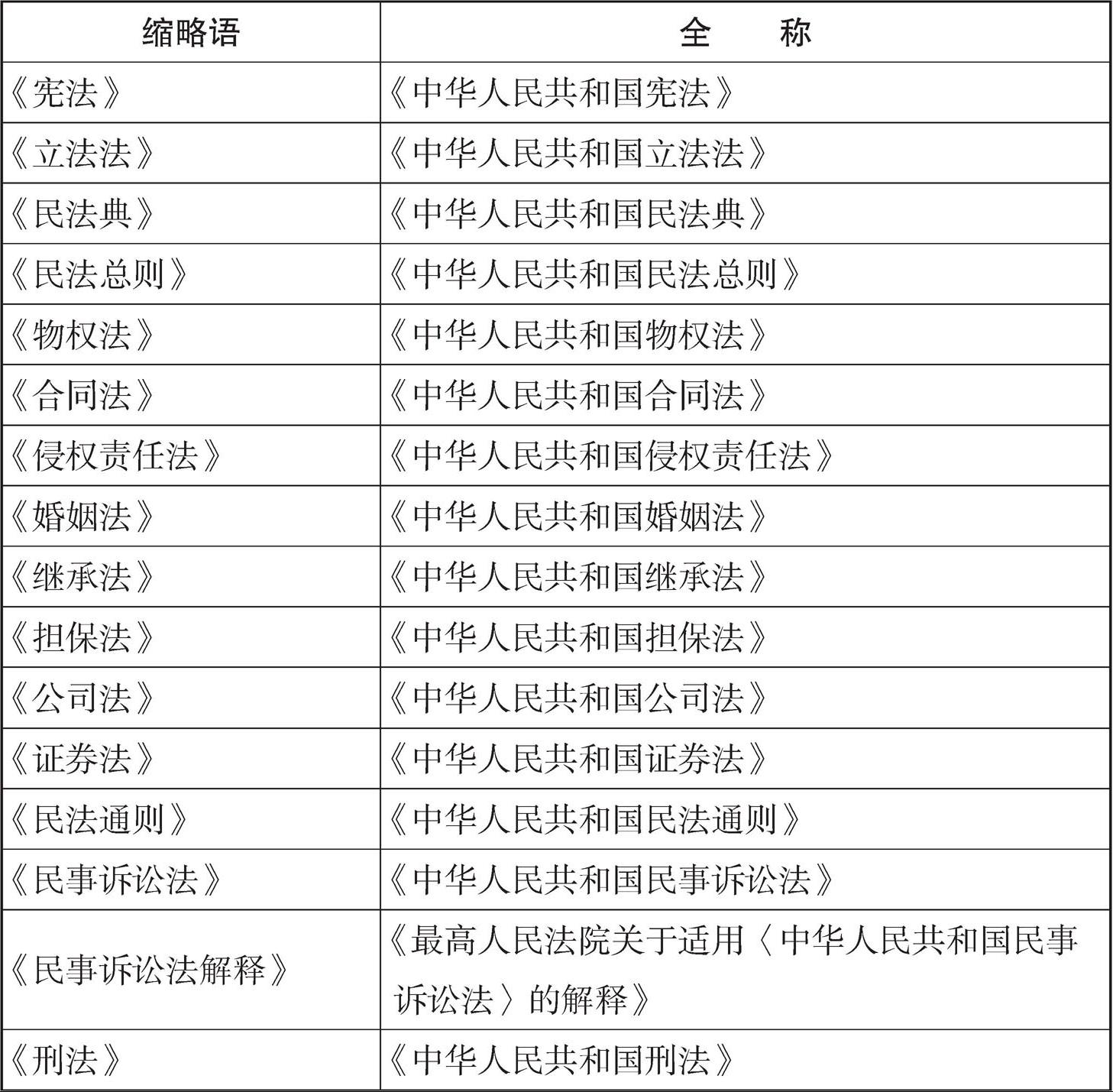本书主要法律文件名称及缩略语对照表