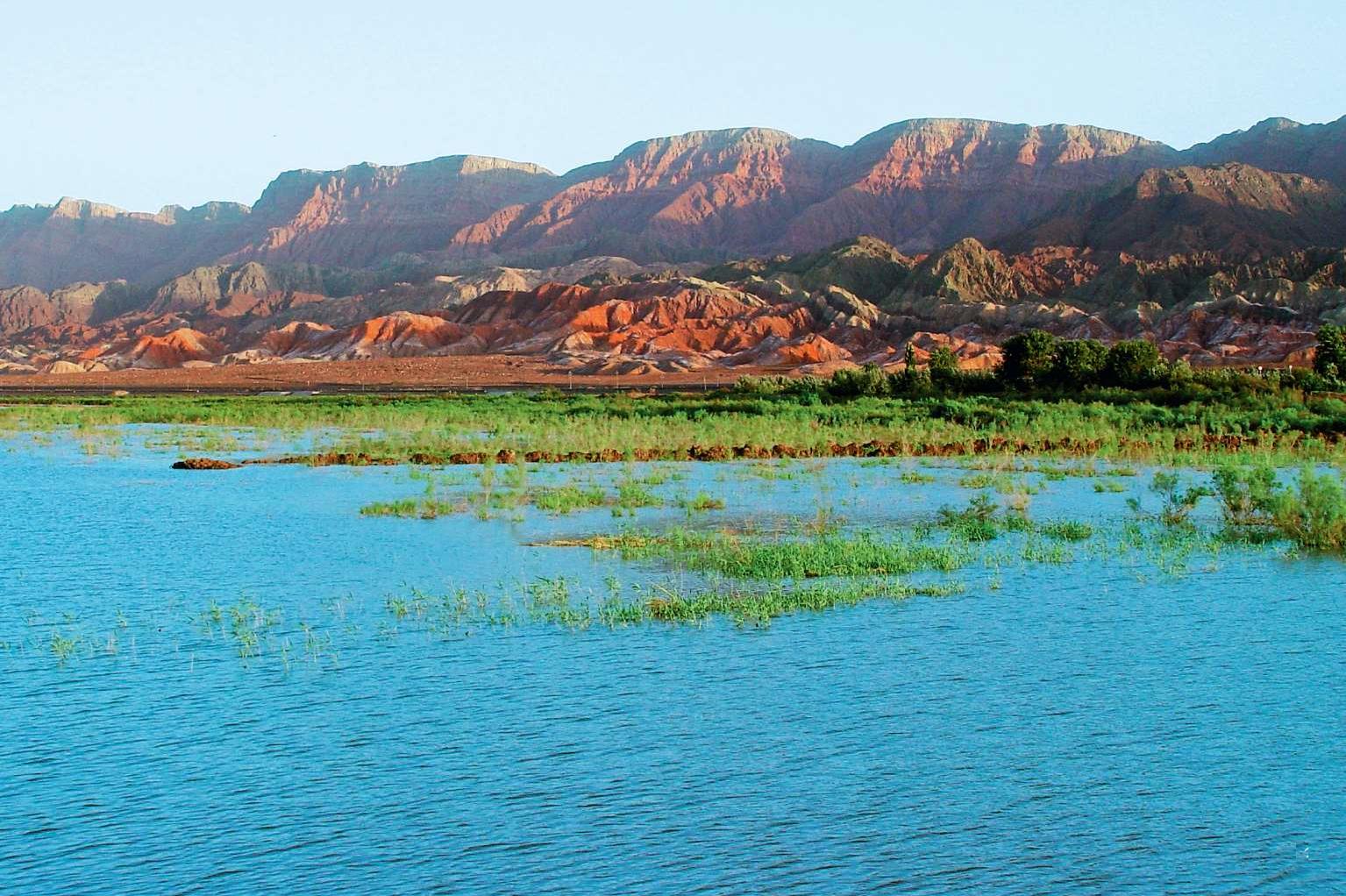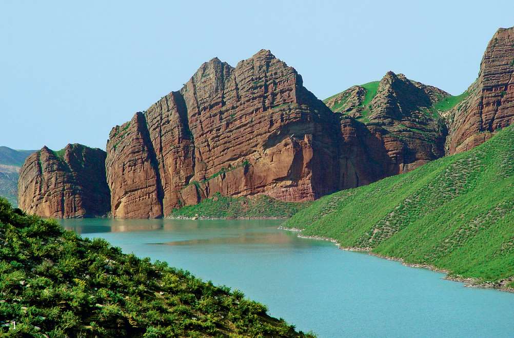 1石门子水库边的丹霞地貌