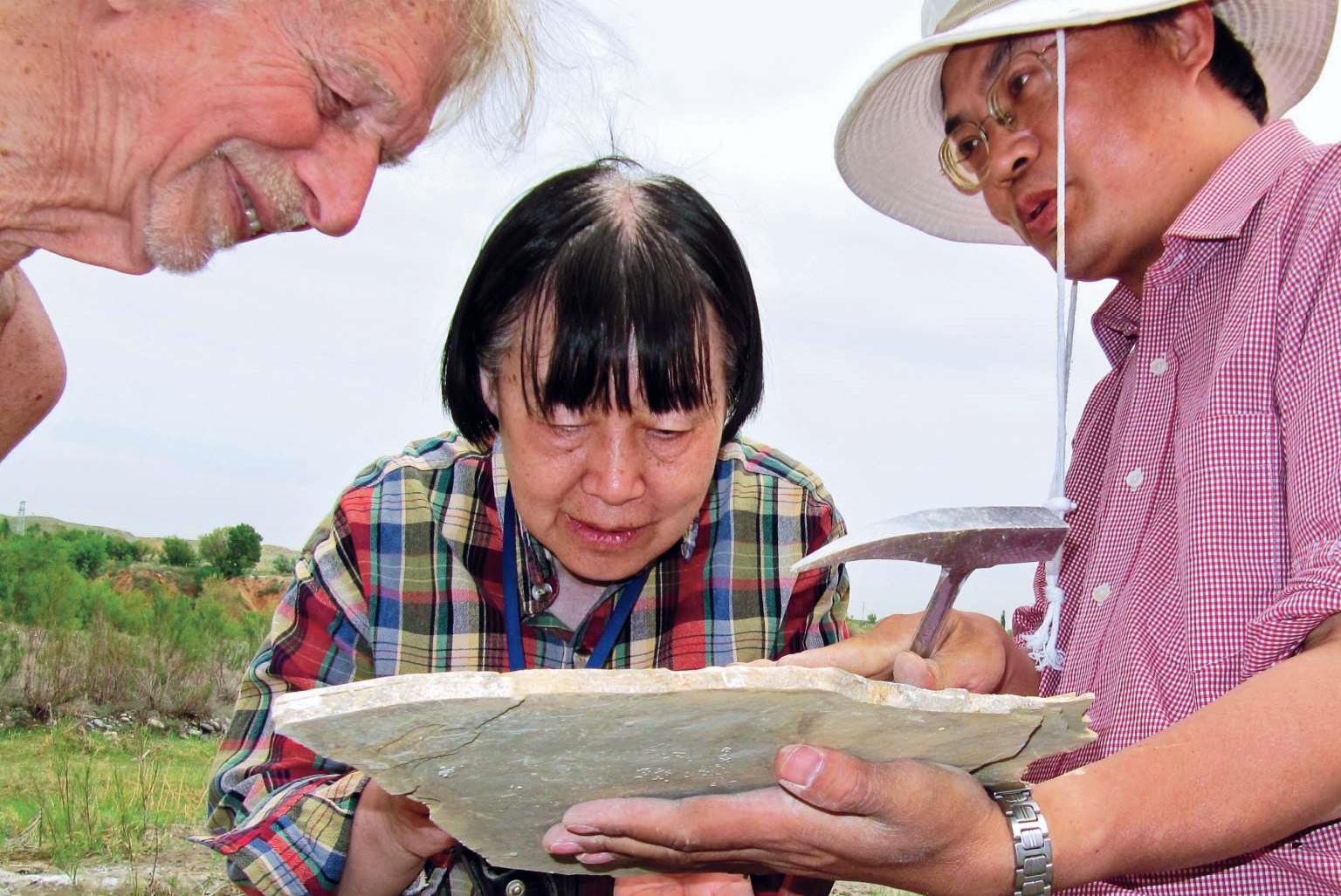1张弥曼院士(中)、佩德森博士(左)和本书作者在野外观察标本(王钊摄)