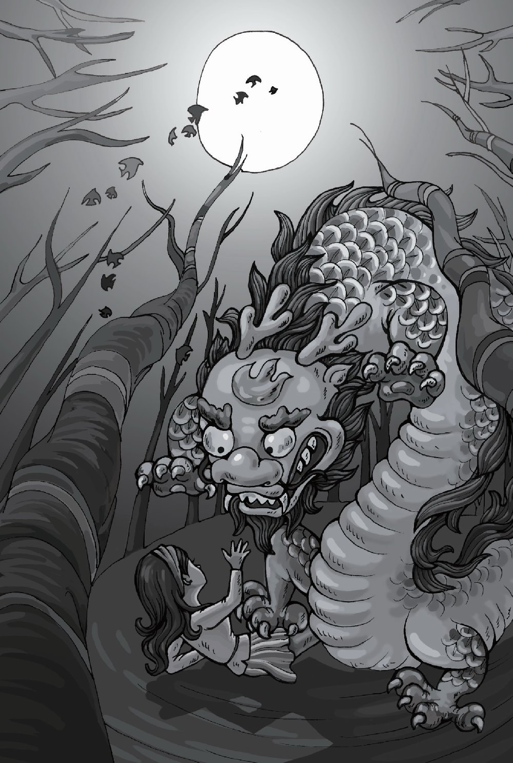 郭洪立即轻手轻脚地避开,把刚才扯掉的夜视仪重新戴上。何曼袅袅婷婷地走过来,一头长发松开了,垂泻在身后,穿着 T 恤和短裙。在她身后,就是黄先生反复描述过的场景:一个长长的身影,枝枝桠桠的龙角,扁平的龙尾,闪闪发亮的龙鳞。郭洪真不敢相信自己的眼睛,瞪大眼睛仔细观看,没错,是龙!那条龙是蛇行的,四条鹰一样的龙爪拖在身后。龙的形状和黄先生的描述完全一样,或者说,和华夏民族的传说中所描绘的完全一样。