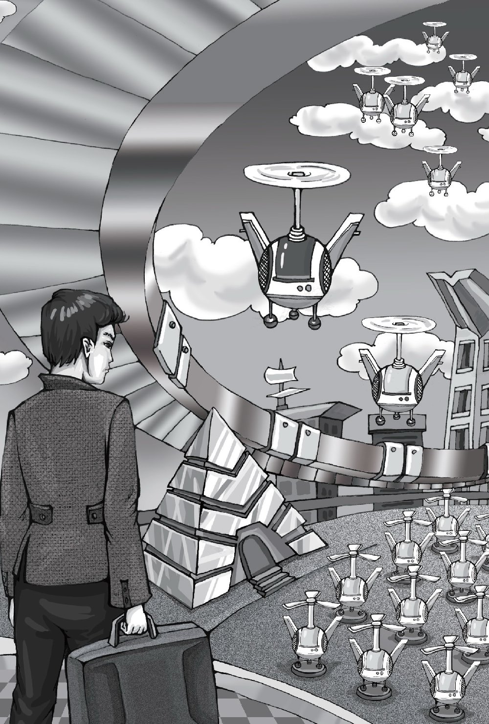 他确实累了。虽然在 01 基地同事们看来,他是个永远不知疲倦的“机器人”,严厉精细,近乎不通人情,有着钢铁般的神经,但即使钢铁也会疲劳断裂的。也许是假期让他放松了心境,刚才在直升机的15分钟航程中,他还抽空打了个盹,甚至做了一个短梦。他梦见妻子在家里向他招手,小豹头也从窗户里探出脑袋笑嘻嘻地看他。忽然,远处的云层里突现一个七彩的光洞,一道光剑从光洞中射出,转化为巨大的磁吸力……然后是直升机电脑驾驶员的声音:“先生,到你家了,再见。”