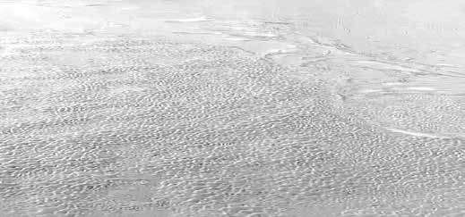 笔者曾在新疆的库尔班通古特沙漠见过大风的驱动下,沙漠流动的壮观景象。大风刮过时,不远处的沙丘像河水般流动起来,滚滚前行。沙的河流上还飘着薄雾一样的沙尘层,既像清晨的雾,又像淡淡的炊烟,随着沙河的流动飘舞。沉浸在这奇妙的意境中,使人忘了时空的存在,忘了此时此刻自己正置身沙漠之上。