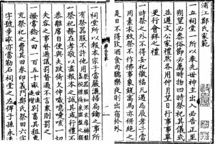 正是由于他们的推动和主导,使得江南地区的家风家训首先强调服务于儒家教化的功能,修身齐家的目的为了治国平天下。如金华吕祖谦在其《家范》中指出:“宗庙严,故重社稷。盖有国家社稷,然后能保宗庙,安得不重社稷?重社稷,故爱百姓。国以民为本,无民安得有国乎?故重社稷,必爱百姓也。爱百姓,故刑罚中。刑罚中,故庶民安。”儒家教化功能的另一个体现是重建礼仪制度,并全面推广。先秦时期,仪礼是以王侯、贵族为对象的,并不适用于普通人。《礼记·曲礼》曰:“礼不下庶人,刑不上大夫。”《荀子·国富篇》曰:“由士以上则必以礼乐节之,众庶百姓则必以法数制之。”即使到了唐代,祖先祭祀所设的家庙和神主也是依据官品而设定的。普通百姓无权拥有家礼。但是到了宋代,随着大量普通士人掌握权力,他们要求重建家礼,并将其普及于平民百姓。这方面以司马光《家范》、吕祖谦《家范》和朱熹《家礼》最为突出,至朱熹《家礼》而集大成。同时正如相关研究者所指出的,也是从朱熹起,真正意义之上为后世普遍接受的宗祠制度基本完备,祠堂成了家礼体系的基石,并应用推广到所有众庶百姓之家,使其成为儒家教化的重要组成部分。