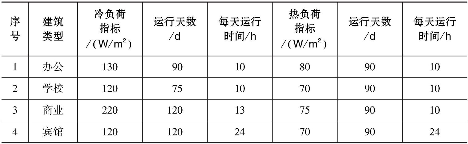 表3-7 不同建筑类型负荷指标和运行时间表