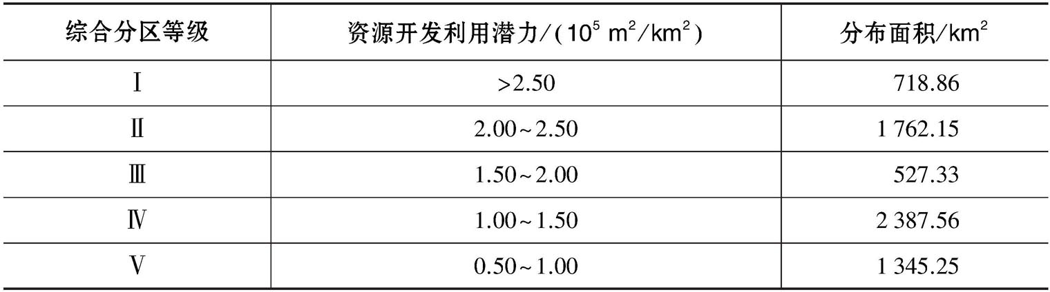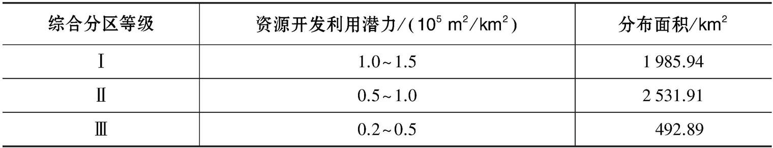 表3-5 地埋管换热系统资源开发利用潜力综合分区评价表