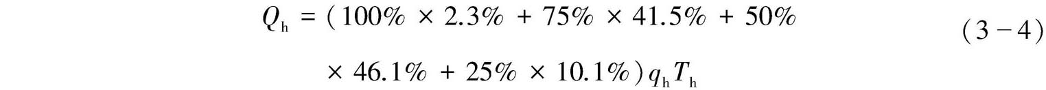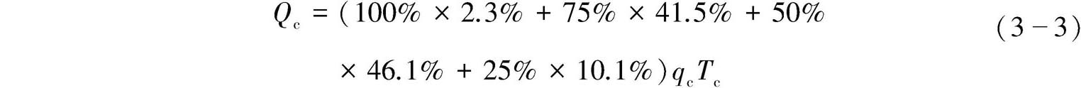 根据上海地区不同类型建筑物空调冷热负荷指标和设计参数,依据《公共建筑节能设计标准》第5.4.7条所规定的各个负荷段所占的运行时间比例(表3-7),分别计算办公、学校、商业和宾馆四种公共建筑的夏季制冷季、冬季供暖季累计负荷 [4] 。