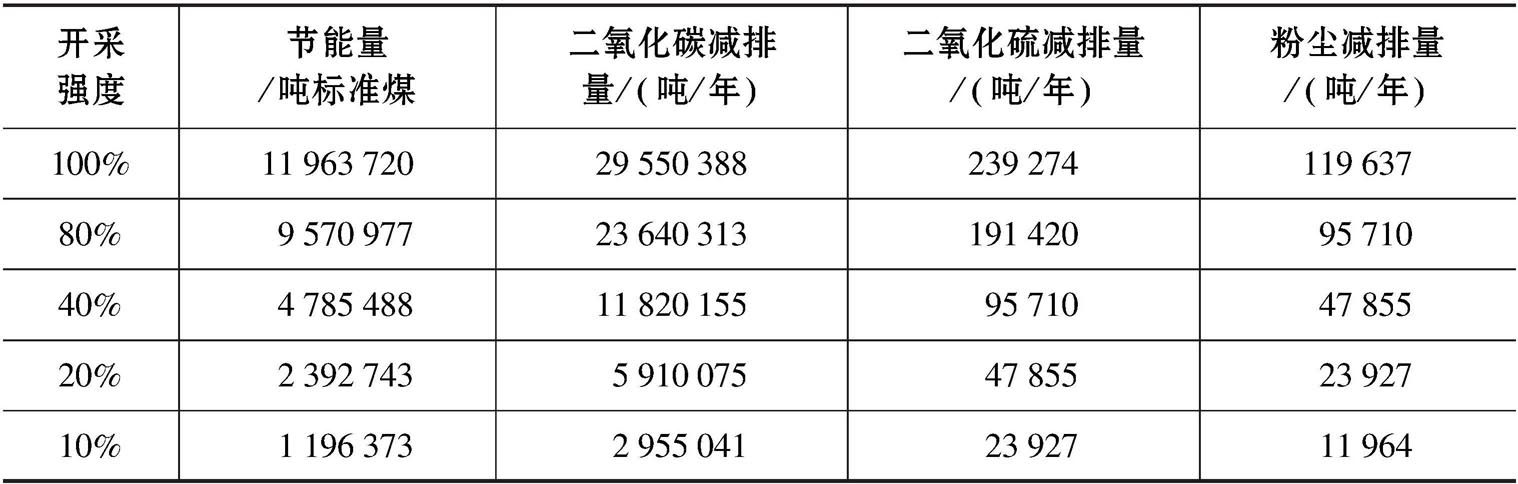 二氧化碳减排量、二氧化硫减排量和粉尘减排量估算结果见表3-11。