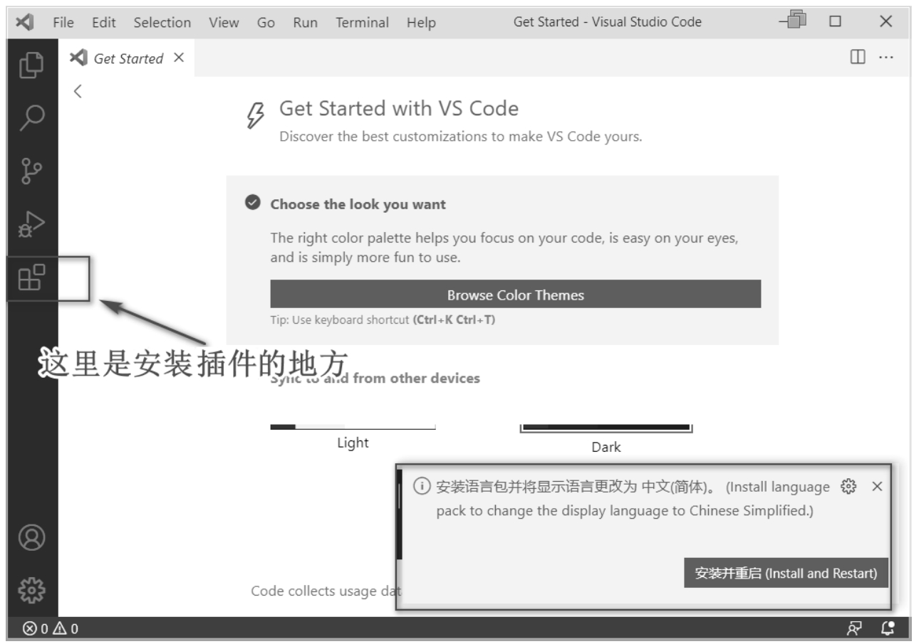 安装完之后会检测系统语言,并提示安装中文扩展,如果没有显示这个提示,则可以自行安装,如图1-51所示。