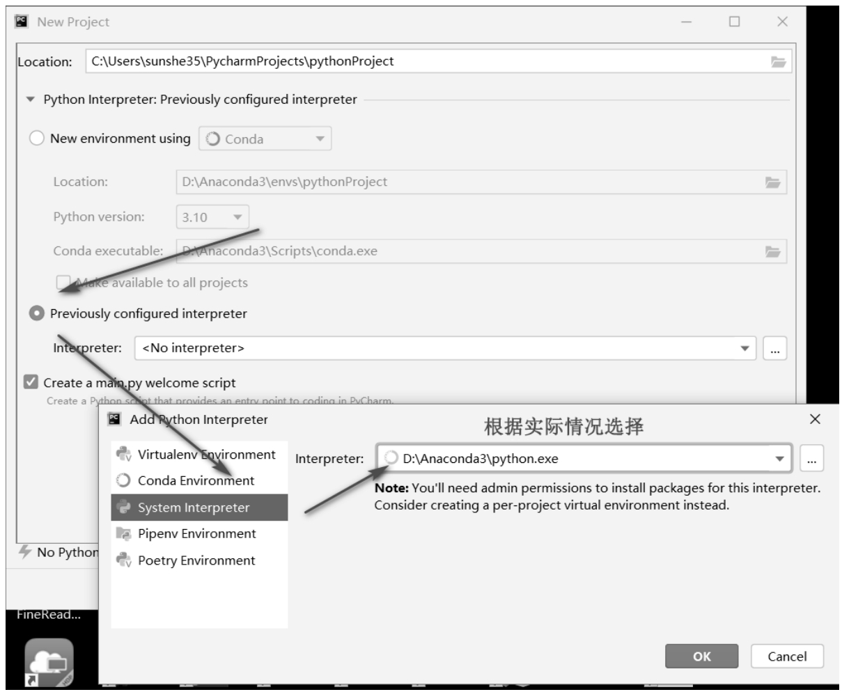 如果要切换到其他Python环境,如虚拟环境,则可以按照如图1-58所示的步骤操作。
