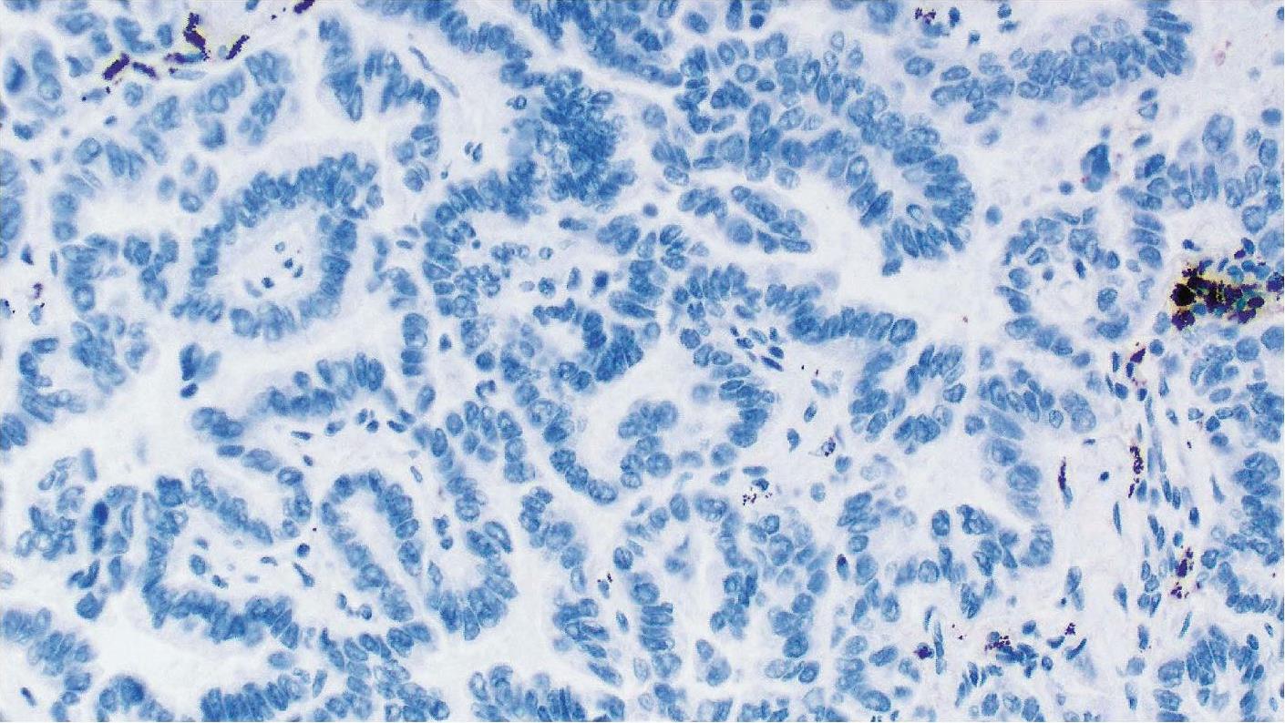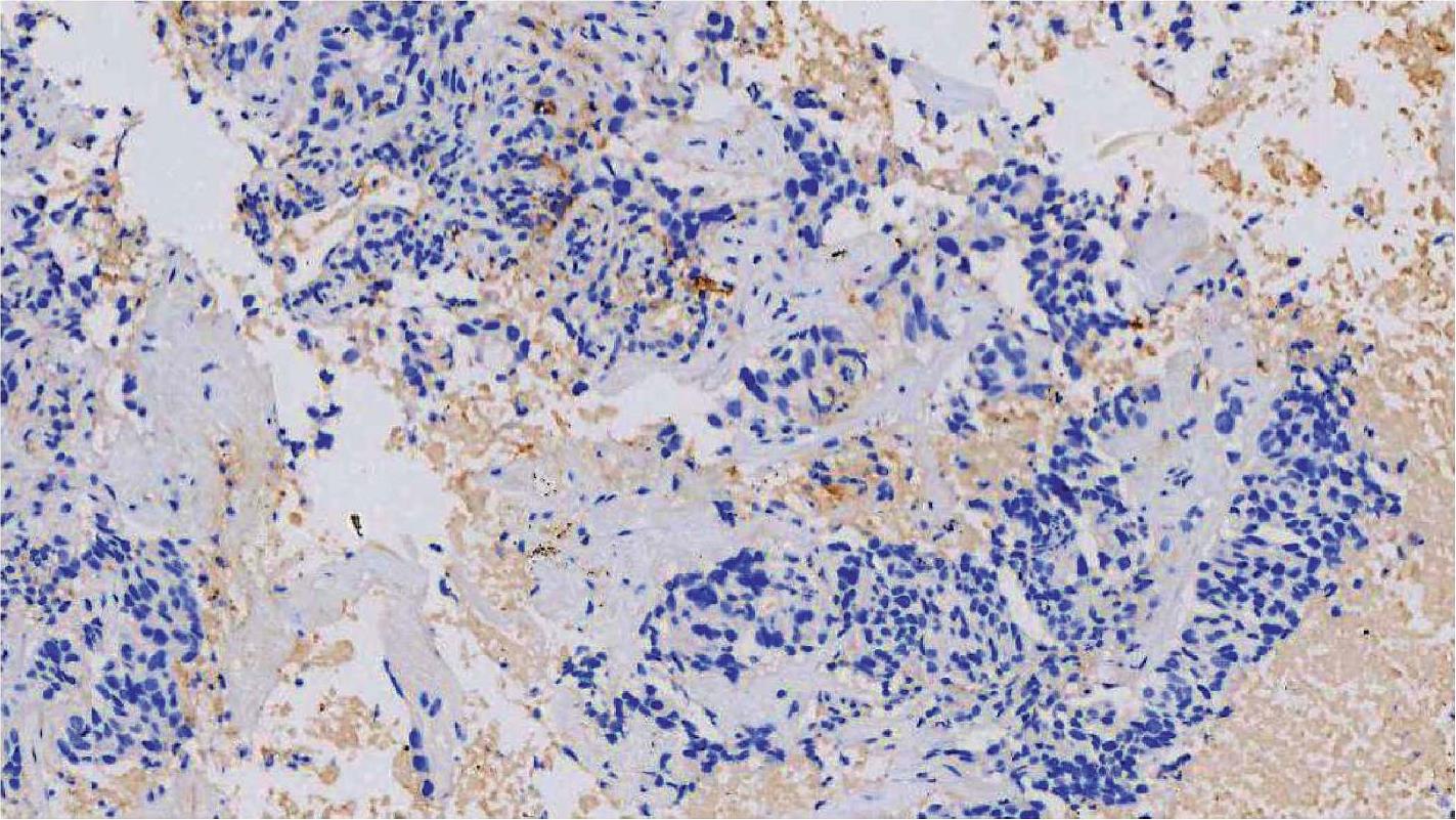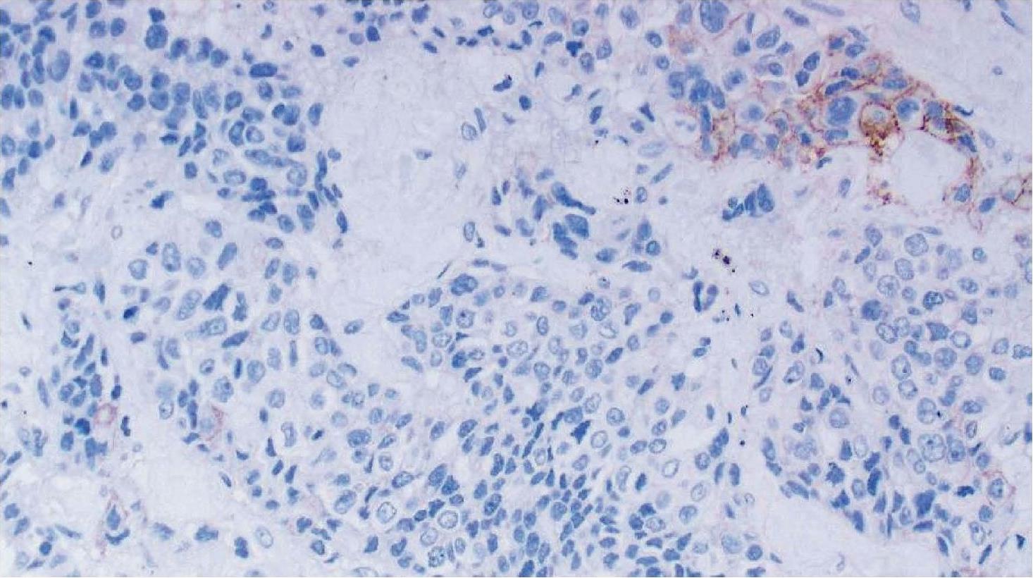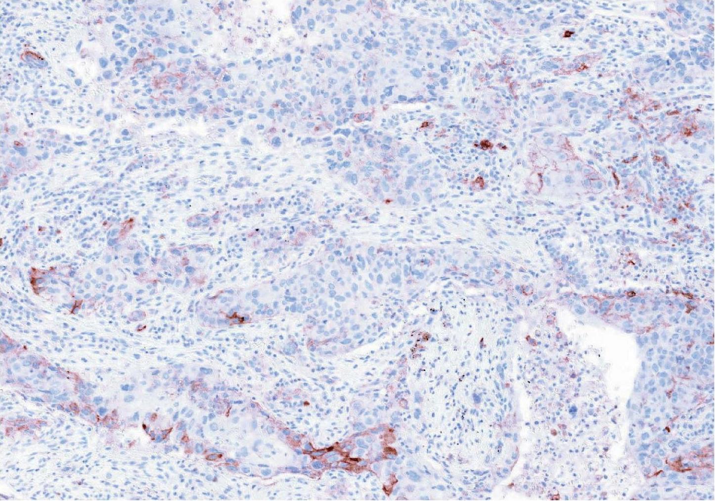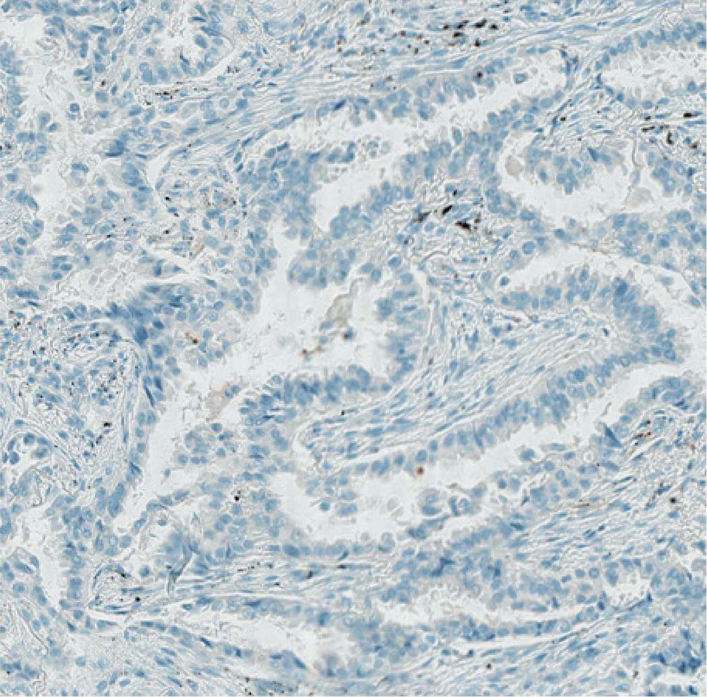图2-3 NSCLC PD-L1 (22C3)免疫组织化学染色图(×100),TPS=0 [5]