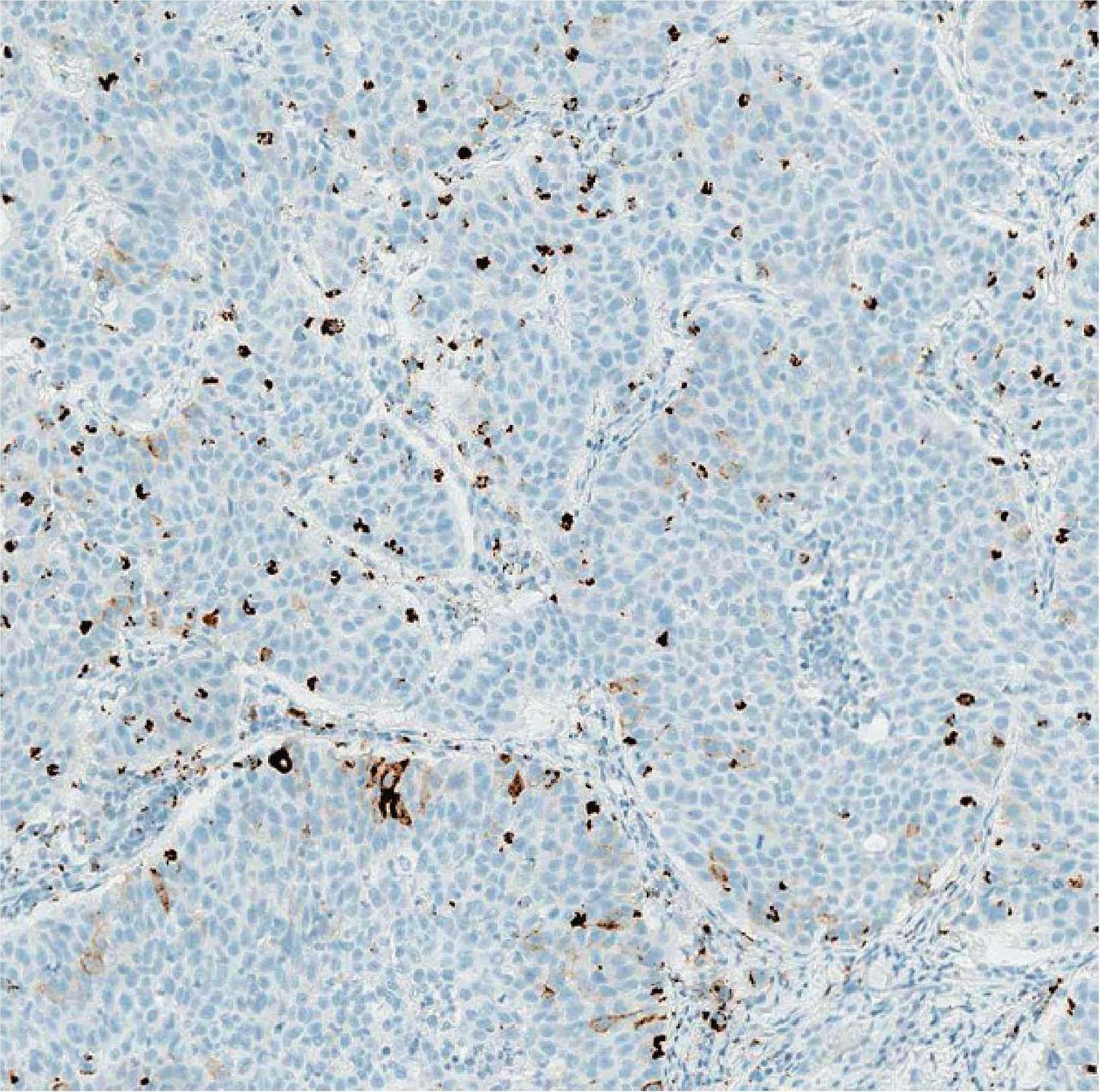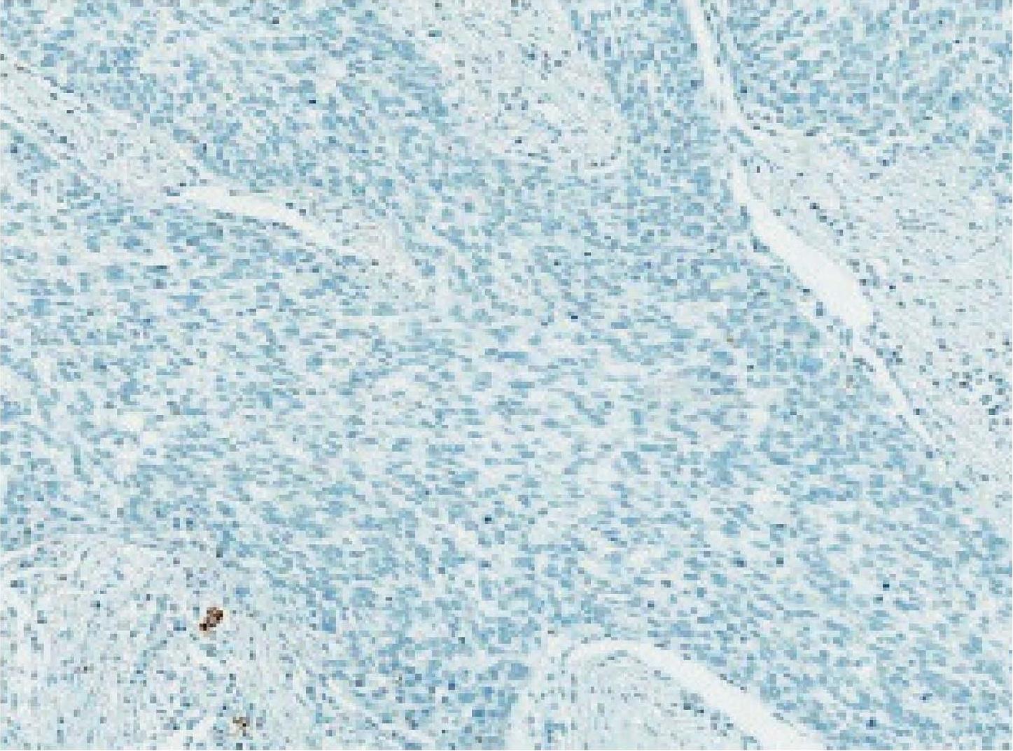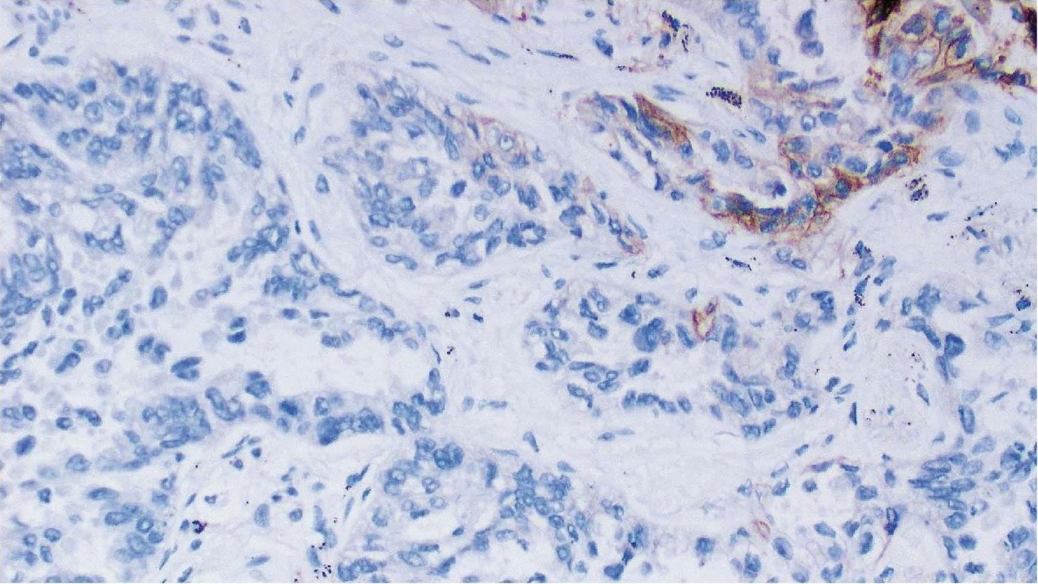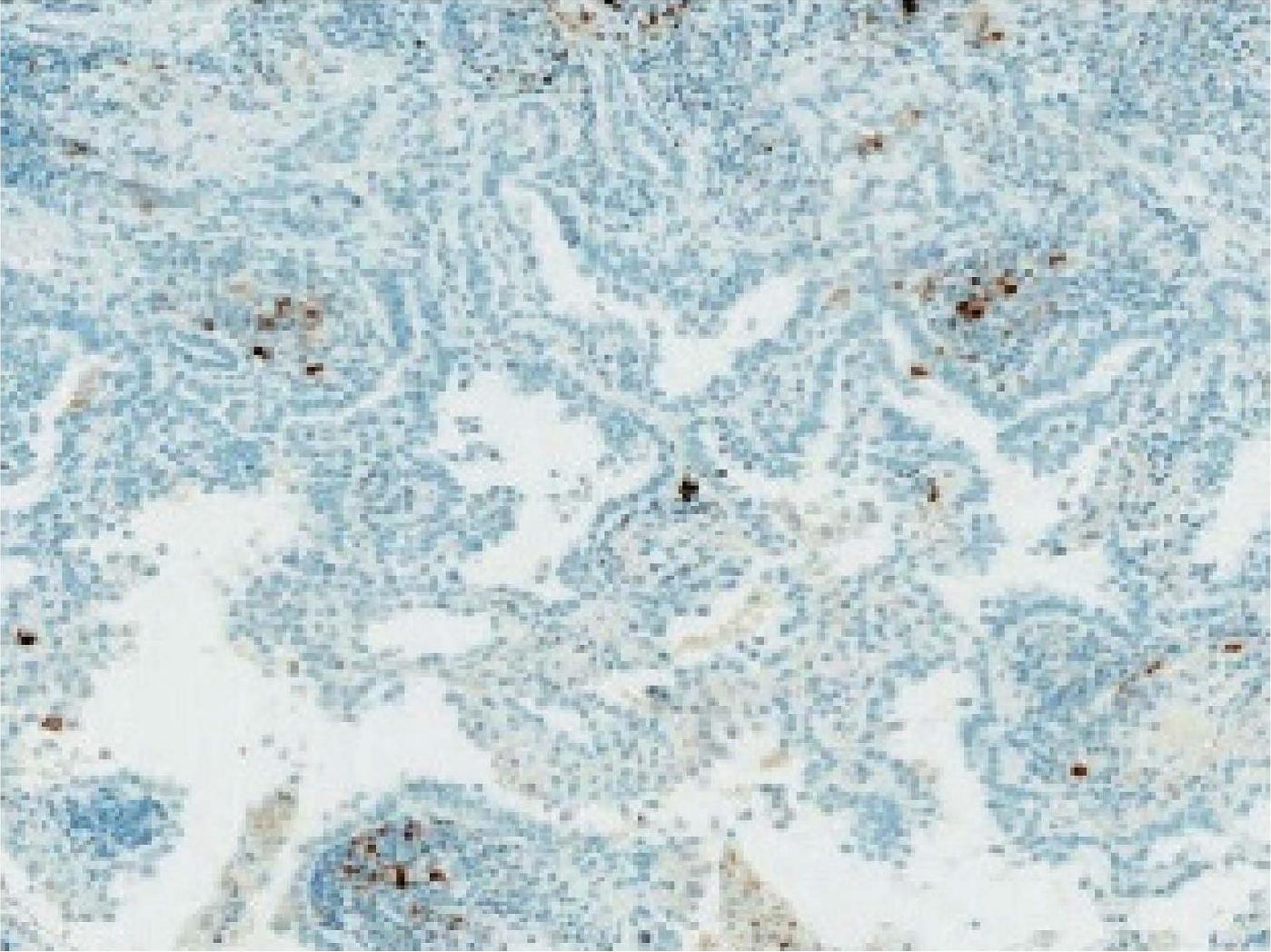 图2-3 NSCLC PD-L1 (22C3)免疫组织化学染色图(×100),TPS=0 [5]
