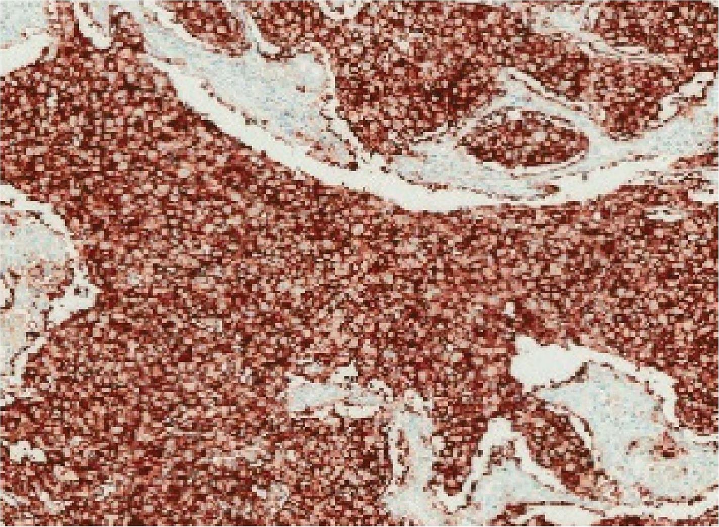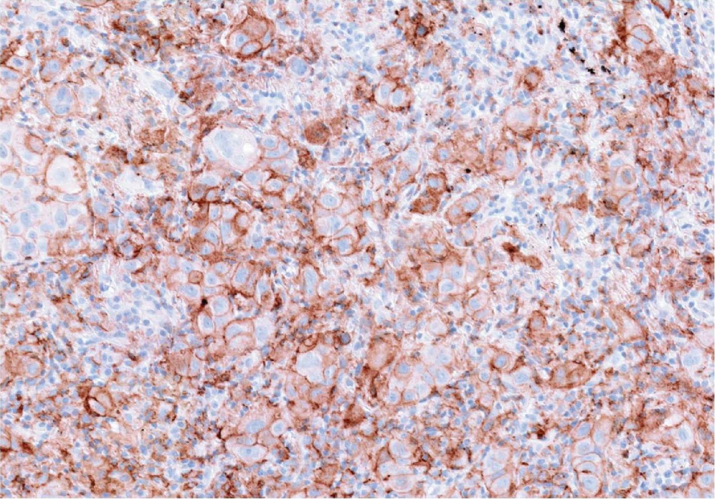 图2-17 NSCLC PD-L1 (SP263)免疫组织化学染色图(×400),TC评分≥50% [7]