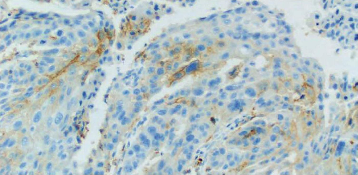 图2-9 NSCLC PD-L1 (28-8)免疫组织化学染色图(×200),TC评分≥10% [6]